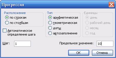Рис. 2. Окно команды ПравкаèЗаполнитьèПрогрессия