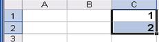 А для заполнения ячеек С1:С10 натуральным рядом чисел методом Автозаполнение следует: