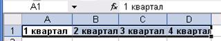 Рассмотрим еще один пример использования метода Автозаполнения для ввода серии элементов. Допустим в соседние ячейки нужно ввести следующие элементы: 1 квартал, 2 квартал, и т.д. (или 1 семестр, 2 семестр, и т.д.). Для этого: