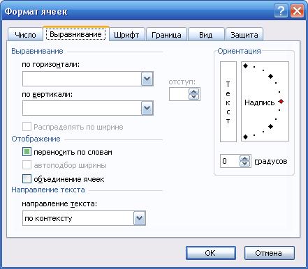 Рис 19. Вкладка Выравнивание окна «Формат ячеек»