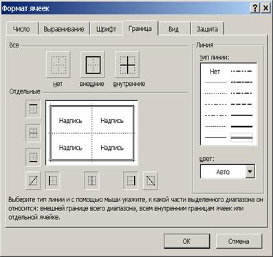 Рис. 22. Окно «Формат ячеек», вкладка «Границы»