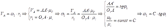 Графическое определение передаточного отношения таких механизмов осуществляется методом планов скоростей (треугольников скоростей). Треугольник скоростей можно построить, если для звена известны линейные скорости не менее двух точек звена (по величине и направлению). Используя этот метод можно получить наглядное представление о характере изменения скоростей от одного вала колеса к другому, а также можно определить графически угловую скорость любого колеса.