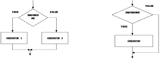 Если логическое выражение принимает значение TRUE, то выполняется <оператор 1>, иначе (если логическое выражение принимает значение FALSE) выполняется <оператор 2>. Условный оператор относится к сложным операторам, так как в его состав входят другие операторы.