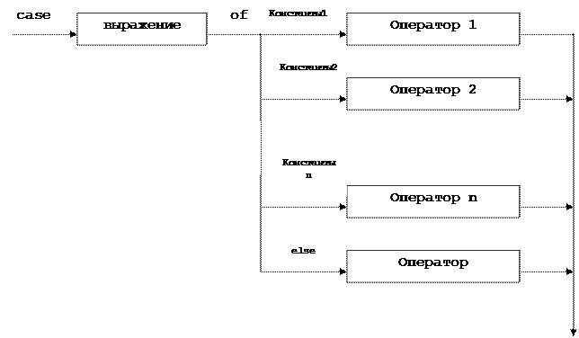 Селектор должен относиться к одному из целочисленных типов (находящихся в диапазоне – 32768.. 32767): булевскому, литерному или пользовательскому. Список констант выбора состоит из произвольного количества значений, или диапазонов, отделенных друг от друга запятыми. Границы диапазона записываются двумя константами через разграничитель «..». Тип констант в любом случае должен совпадать с типом селектора.
