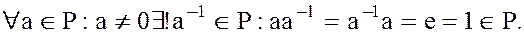 , если в нем содержится, по крайней мере один, элемент, отличный от нуля, и если в нем выполняется операция деления, кроме деления на нуль, т.е. для любых его элементов
