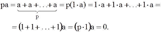 – общий порядок любого ненулевого элемента в аддитивной группе поля