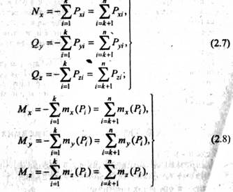 На рис. 2.3 представлен брус, находящийся под действием уравновешивающейся системы сил {Р1,Р2...Рк,Рк+1...Рп-1,Рп}.