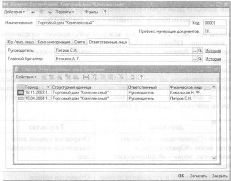 То есть в конфигурации сохраняется история введенных значений. При вводе информации об ответственных лицах, информация записывается на текущую дату, установленную на компьютере пользователя.