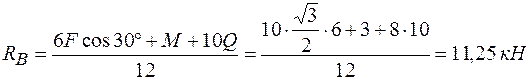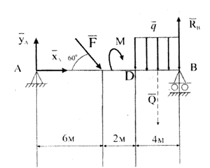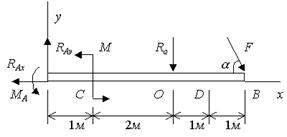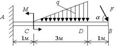 Задача 1. Определить реакции опор, если F = 10 кН, q = 2 кН/м, М = 3 кНм.
