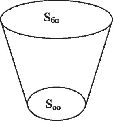 Рис. 4.4. Схематическое представление расположения барабанной перепонки и овального окна: Sбп - площадь барабанной перепонки; Sоо - площадь овального окна