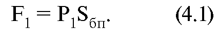 На барабанную перепонку действует звуковое давление Р1, создающее силу