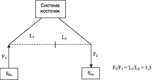 Рис. 4.5. Схематическое представление работы системы косточек как рычага