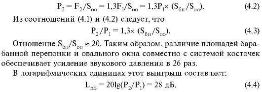 L1/L2 = 1,3, который дает выигрыш в силе со стороны внутреннего уха в 1,3 раза (рис. 4.5).