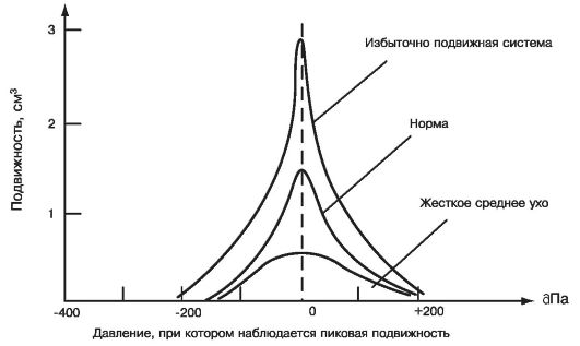 Повышенная подвижность свидетельствует о недостаточной упругости барабанной перепонки или о вывихе слуховых косточек. Пониженная подвижность указывает на избыточную жесткость среднего уха, связанную, например, с наличием жидкости.
