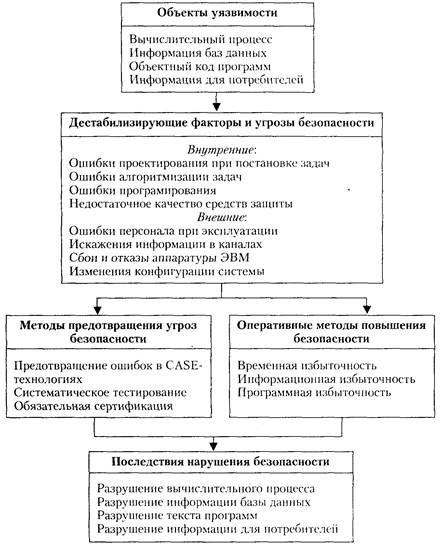 Анализ безопасности ИС при отсутствии злоумышленных факторов базируется на модели взаимодействия основных компонент ИС (рис. 2). В качестве объектов уязвимости рассматриваются: