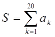 Задан одномерный массив действительных чисел ak, k = 1,2, …, 20. Составить программу для вычисления суммы
