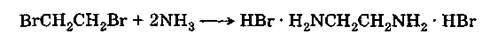 Этилендиамин (1,2-этандиамин) H2NCH2СН2NН2. Он является простейшим диамином; может быть получен действием аммиака на этиленбромид: