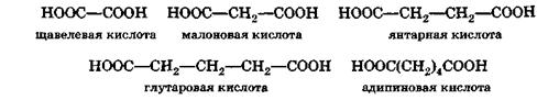 В молекуле двухосновных кислот содержатся две карбоксильные группы, поэтому они дают два ряда производных, например средние и кислые соли, средние и кислые сложные эфиры: