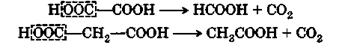 При нагревании щавелевой и малоновой кислот легко отщепляется СО2: