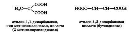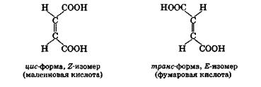 Малеиновая и фумаровая кислоты. Простейшими из двухосновных кислот, содержащих этиленовую связь, являются два структурных изомера: