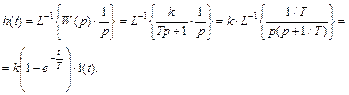 На рисунке 2.6 представлены для сравнения сигналы х (t) = 1(t) и z (t) = h (t) инерционного звена.