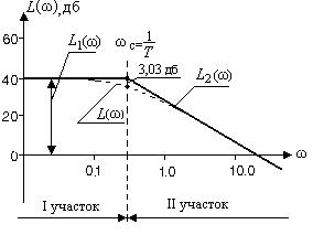 Выражение для асимптоты I участка L 1(ω) получим из соотношения (4) для точной ЛАЧХ, если учтем условие (5), т.е. в подкоренном выражении члена