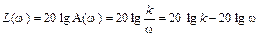 и ЛАЧХ интегрирующего звена выглядит следующим образом (рис. 2.16):