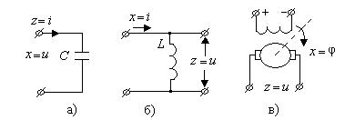 Примерами такого звена могут служить электрическая емкость (рис. 29 а), индуктивность (б), тахогенератор (в).