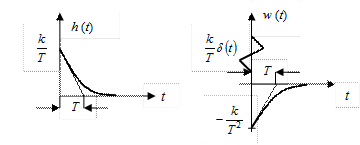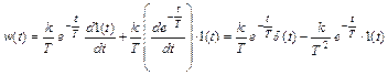 Таким образом, получается, что весовая функция реального дифференцирующего звена w(t) состоит из двух составляющих. Первая составляющая