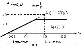Как видно из (10) звена имеет одну постоянную времени Т и, значит, одну сопрягающую частоту