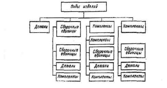 Понятие «изделие» также имеет широкий диапазон значений. Изделием называется любой предмет или набор предметов производства, подлежащих изготовлению на предприятии. Под изделием подразумеваются все объекты материального производства и их составные части машины, технологическое оборудование, механизмы, функциональные системы и др. (рис.1). Установлены следующие виды изделий: детали, сборочные единицы, комплексы, комплекты.