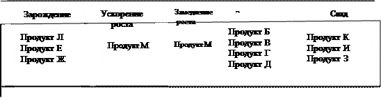 Рис. 3.4. Жизненные циклы продуктов фирмы в различных типах производств бостонской матрицы