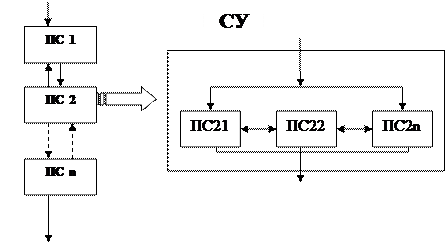 В свою очередь, есть понятие, горизонтальной декомпозиции, когда одна из подсистем иерархической системы расчленяется на несколько подсистем одинакового уровня подчиненности, то есть на такие подсистемы, между которыми – только информационные связи.
