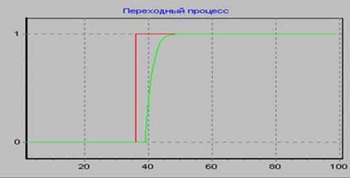 , где 43,9 – момент окончания переходного процесса, 36 – начало действия внешнего воздействия, 3 – запаздывание.