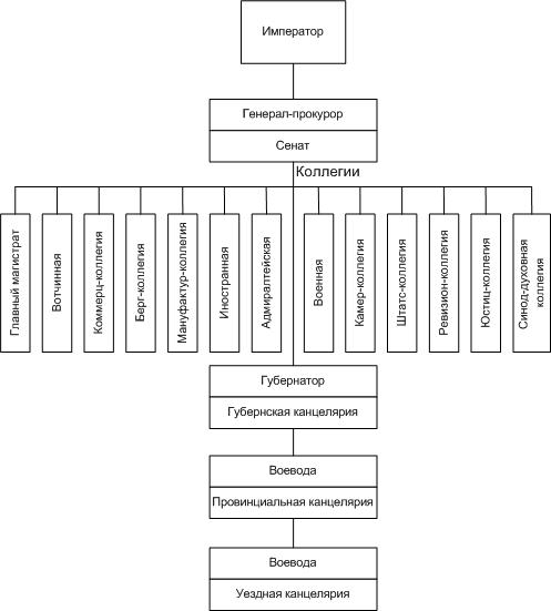 Рис. 4. Система органов власти и управления Российской империи в XVIII в.