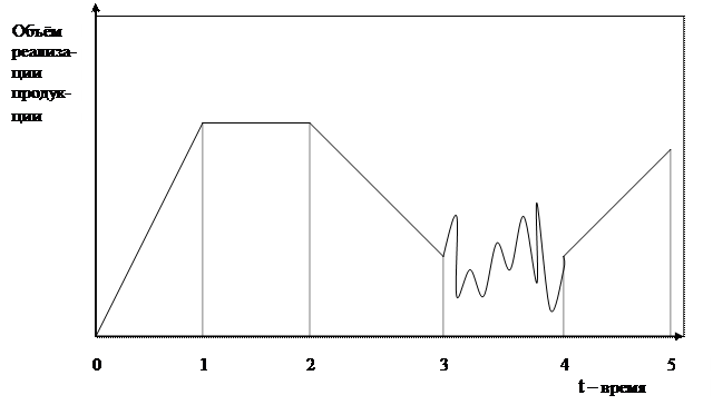 Таким образом, из графика жизненного цикла предприятия следует, что на этапах роста и стабилизации (0 – 1, 1 – 2) реализация продукции предприятия не уменьшается, то есть оно имеет устойчивый доход и прибыль, которую может расходовать по своему усмотрению. На этапе стагнации (2 – 3) начинает сокращаться реализация продукции, что приводит к сокращению доходов предприятия вплоть до невозможности дальнейшего функционирования, то есть до наступления кризиса.