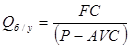 Точке пересечения выручки и совокупных затрат соответствует безубыточный объем производства (Qб/у), в стоимостном выражении представляющий собой порог рентабельности (ПР). Формализовано это можно представить следующим образом: