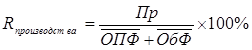 3. Рентабельность производства (Rпроизводства) определяется отношением прибыли к среднегодовой стоимости основных производственных фондов (ОПФ) и оборотных фондов (ОбФ).
