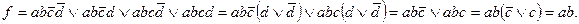и abcd. Простая импликанта ab покрывает все четыре конституенты исходной функции.