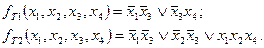 Находим соответствующие выделенным контурам простые импликанты и запишем две тупиковые ДНФ данной функции: