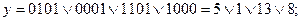 Входим в четырехразрядную решетку соседних чисел и находим эти рабочие числа. Видим, что числа 1 и 5, 5 и 13 соседние, а 8 – отдельное число. Записываем их по группам в виде дизъюнкции