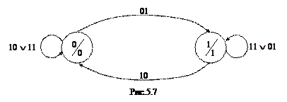 Условия функционирования импульсного триггера со счетным входом описываются в отмеченной таблице переходов (Таблица 5.13) и таблице входов (Таблица 5.14) и графом переходов (Рисунок 5.11).