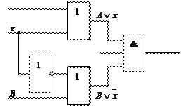 Ранее было установлено, что в комбинационных ДУ, построенных на бесконтактных элементах, из-за задержки прохождения сигнала через инвертор во время переходного процесса при изменении входного сигнала x с 1 на 0 (x = (1 → 0)) возникает такая ситуация, когда оба сигнала x и