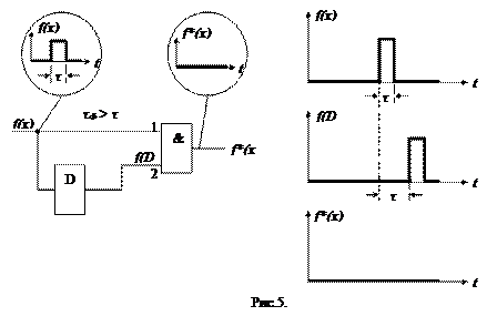Функциональная схема фильтра, устраняющего ложные сигналы типа риск в нуле на выходе ДУ (Рисунок 5.26), состоит из линии задержки D и логического элемента И.