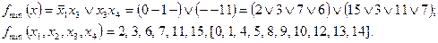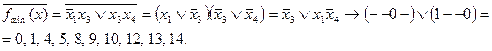 Выразим f min(x) в символической форме при базе x 1 x 2 x 3 x 4: