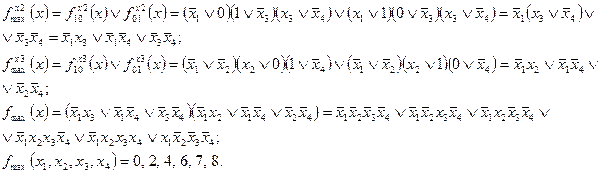 Логическая функция fg 1(x) должна иметь в качестве рабочих наборов (весовых состояний) рабочие наборы функции fP 1(x), а в качестве запрещенных наборов (весовых состояний) – запрещенные наборы функции f min(x).