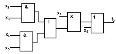F 2 = x 1(x 2 x 3Ú x 4 x 5)Ú x 6.