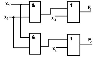 Пример 1.4 Даны минимизированные выражения условий работы ДУ с двумя выходами: F 1 =x 1 x 2Ú x 3;