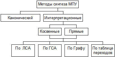 К косвенным методам интерпретационного синтеза МПУ относятся такие, которые позволяют получать логические функции, описывающие условия функционирования отдельных узлов МПУ, а затем по частям построить функциональную схему МПУ в целом.