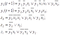 Если в качестве элементов памяти применяются задержки (Д-триггеры), то вместо функций возбуждения элементов памяти следует получать функции у (t +1). Тогда получим для нашего примера: